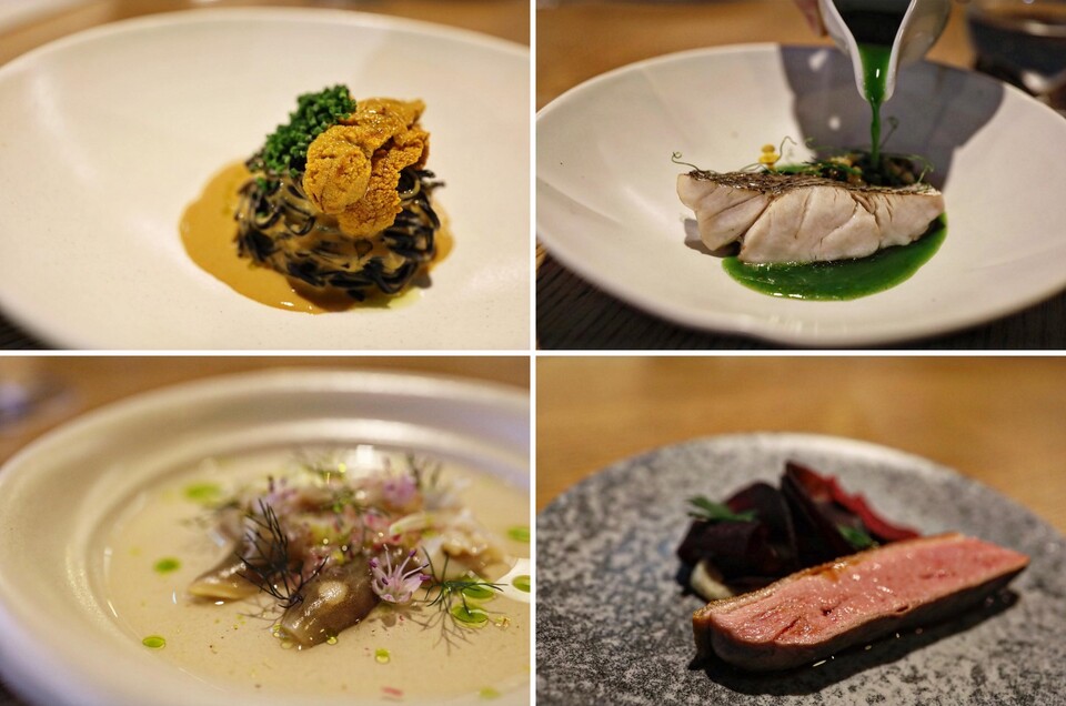 재미난 색감과 감칠맛이 살아있는 아뮤즈부쉐 부터 짭짤하고 바나내음이 가득한 소스로 만든 민어찜, 고소하고 진득한 우니가 가득 올라간 파스타와 함께 오리가슴살 메인과 대파로 만든 아이스 크림이 올라간 옥수수 파이까지 매우 훌륭합니다.