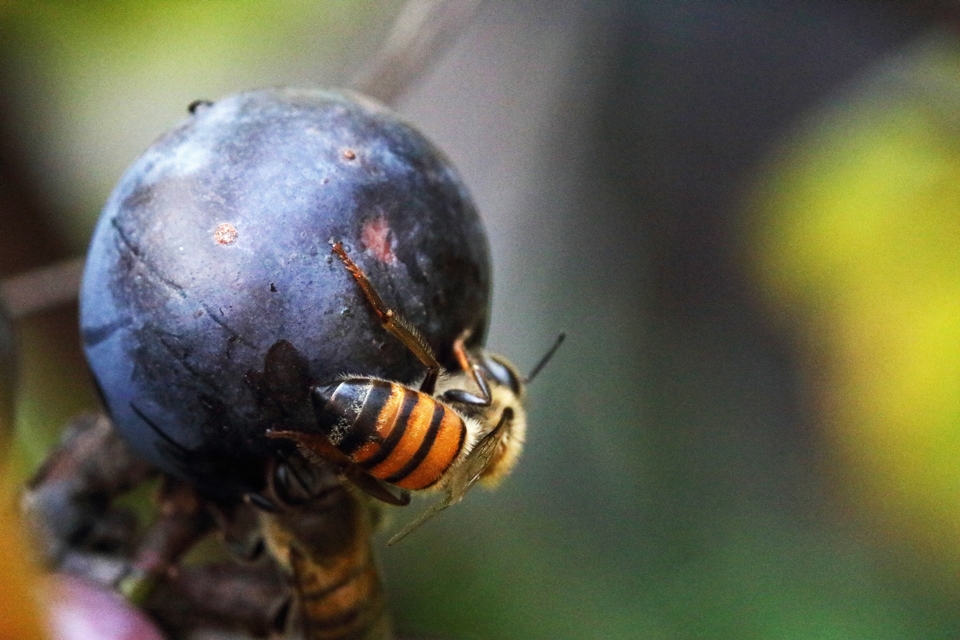 최근에는 꿀벌이 꽃부리(花冠)를 제거함으로써 자가수정을 효율을 높여 포도 열매가 더 많이 그리고 충실하게 달리도록 돕는다는 사실이 밝혀졌다. 특히, 피노 누아에서 효과를 보았으며, 화관이 잘 제거되지 않은 포도로 인해 기형적인 포도가 열릴 수 있다는 것이다. 그리고 꿀벌은 유익한 곤충을 끌어들이고 해로운 곤충을 제거하는 기능도 가지고 있다. 언뜻 보기에는 자가수정을 하는 포도에 꿀벌이 필요 없을 것 같지만, 요즈음 포도밭은 토종 피복작물을 선택하여 생물의 다양성을 극대화하고, 동시에 꿀벌과 곤충에게 영양을 제공하기 위해 봄부터 가을까지 지속적으로 꽃을 피울 수 있도록 배려하고 있다.