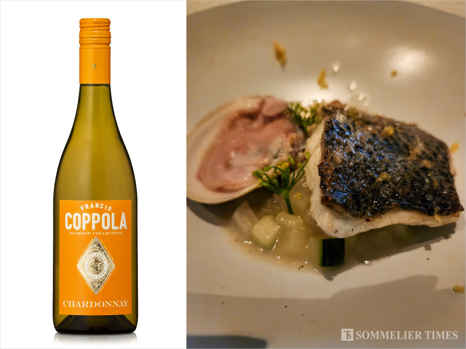 골드 컬러, 자스민, 허니 서클, 레몬 머랭, 복숭아의 아로마와 커스타드, 아몬드와 같은 크리미하면서도 구수한 풍미가 매력 포인트로 '푸타네스카(Puttanesca - 토마토, 마늘, 올리브, 안초비, 케이퍼 등이 들어간 파스타 소스)'를 곁들인 대구살 튀김은 다이아몬드 컬렉션 소노마 코스트 샤르도네와 함께 훌륭한 페어링을 선사했다.