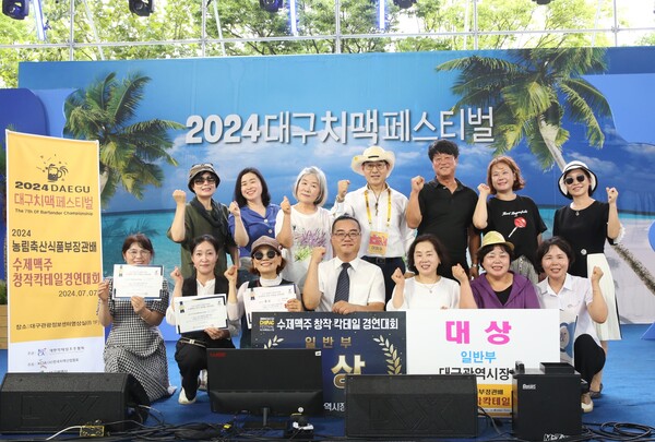 대구한의대학교(총장 변창훈)는 최근 미래라이프융합대학 '메디푸드 음료연구회 동아리' 성인학습자 학생들이 대구치맥페스티벌 기간 수제맥주창작칵테일경연대회에 참가해 일반 부문 대상을 비롯해 참가자 전원 수상했다고 10일 밝혔다.