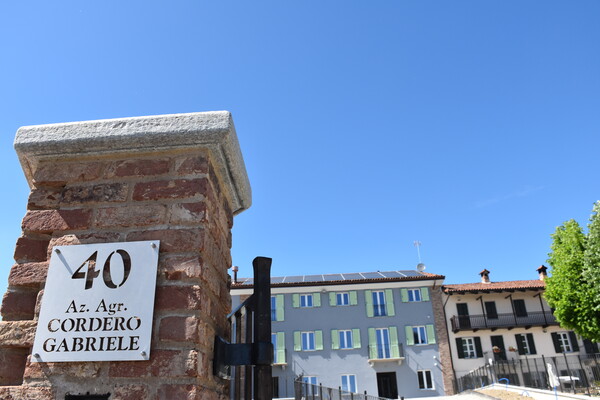 정문 기둥에 걸린 코르데로 가브리엘레 ( Az. Agr. Cordero Gabriele) 명판을 배경으로 스승님이 젊은 친구들을 대동하고 마중 나오셨다. 젊은이들은 스승님의 자녀인 세레나와 가브리엘레 남매였다. 잠시 교통정리를 하자면 명판에 적힌 가브리엘레가 아들이고 와이너리의 실질적 주인이 아들인 거였다. 순간 코르데로가 남자들의 화려한 와인입성이 아닌가 싶었다.