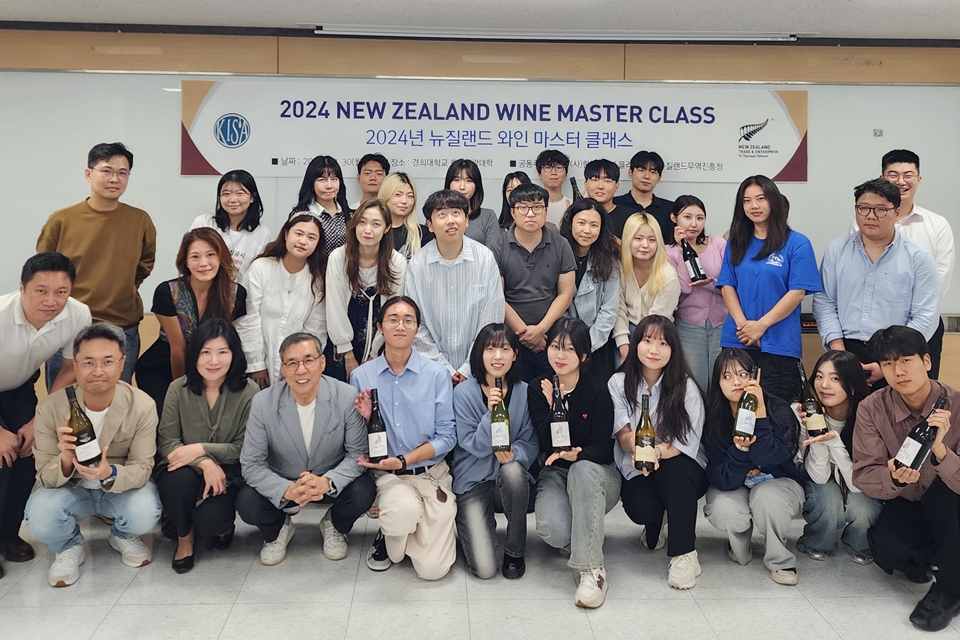 사단법인 한국국제소믈리에협회(KISA)는 뉴질랜드무역진흥청과 공동 주최로 9월 30일 (월) 오후 7시, 경희대학교 호텔관광대학 202호실에서 제6차 '2024 뉴질랜드 자연 친화적인 와인의 비밀’의 주제로 뉴질랜드 와인 마스터 클래스를 개최했다.