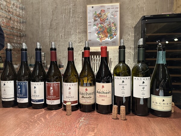 메토도 클라시코 스푸만테 Ascheri Metodo Classico – 메토도 클라시코는 섬세하고 매끄러운 기포를 얻는 2차 병숙성 공정에 샴페인 방식을 도입했다는 뜻이다. 하지만 품종을 달리해 토착종 네비올로가 주원료다. 원료가 레드품종이라 색이 핑크빛일거란 선입견은 금물이다. 화이트 와인의 투명한 노란빛이 돈다. 마테오에 따르면 19세기 중반까지만 해도 네비올로는 스파클링 타입으로 소비됐다고 한다. 당대의 양조덕후인 팔레티 후작 부부와 카밀로 벤소 카브루 백작이 프랑스 보르도나 부르건디에 유행하던 양조기법을 네비올로에 적용해 지금의 바롤로로 진화했다고 한다.