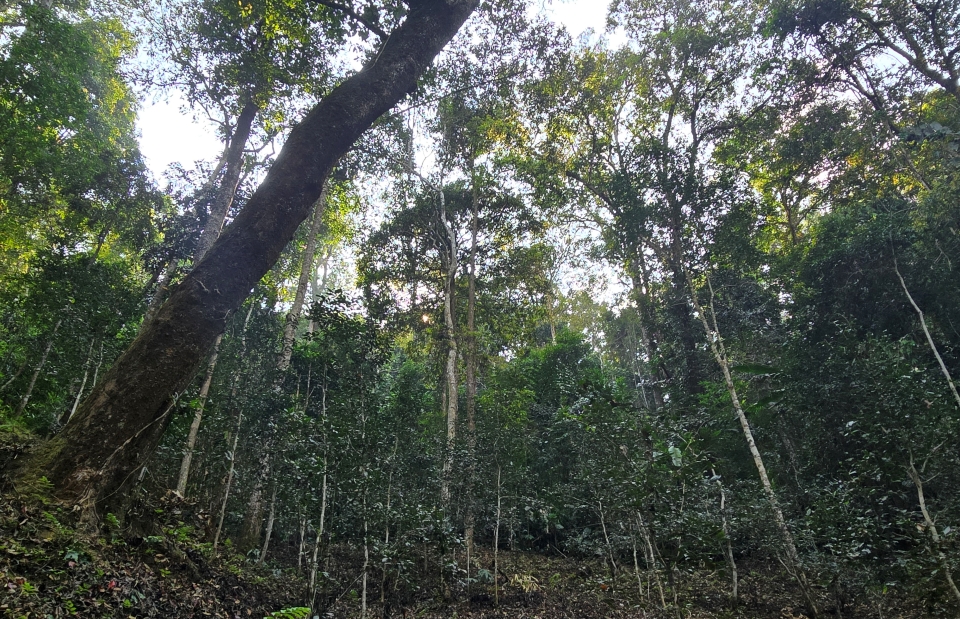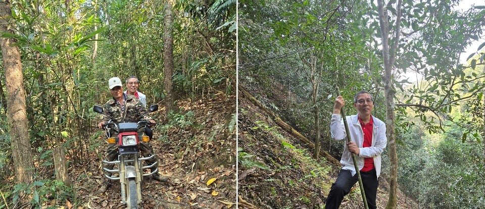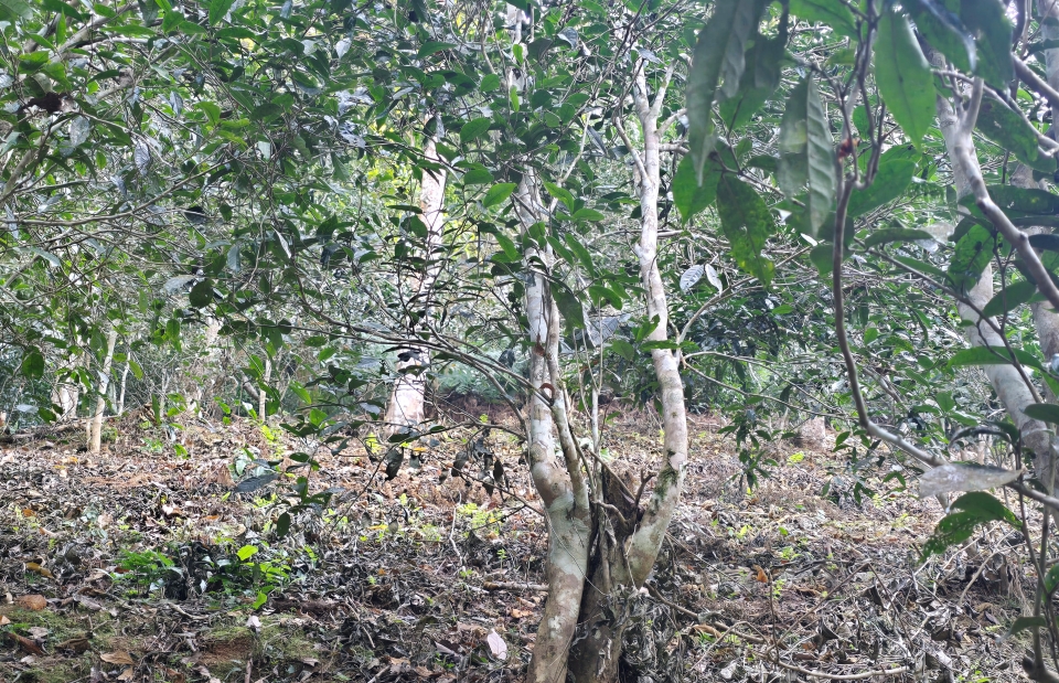 소명유(肖明有) 차농은 부친이 발견한 자신의 도자채 차산을 보여주겠다며 오토바이에 필자를 태우고 만전(蛮砖) 국유림 깊은 산속으로 향했다. 잠시 국도를 벗어나 산속 비포장도로로 접어들면서 깊은 산속으로 계속 들어갈 때마다 좁은 길이 나타나고 마침내 길이 사라져 오토바이는 도저히 들어갈 수가 없었다. 낙엽이 푹 덮여 한사람이 겨우 지날 수 있는 길을 종종걸음으로 따라갔는데 오랜만에 산행이라 자주 넘어졌다. 힘들게 겨우 몸을 겨눌 수 있었던 것은 소명유 차농이 즉석에서 만들어준 대나무 지팡이였다. 소만룡(小曼竜) 마을에서 도자채 차산까지 약 50분정도 걸렸는데 값진 시간이었고, 과거 애뢰산, 대설산의 차왕수를 본 것만큼 행복한 경험이었다. 우거진 삼림으로 햇볕조차 들어오지 않은 원시림에 복숭아나무는 한그루도 찾아볼 수 없고, 고목(古木)들이 수년간 외부 세계와 단절되어 구름 위로 우뚝 솟아있는 자태를 보니 생태환경의 중요성을 새삼 느끼게 되었다. 소엽종 교목 차나무는 키가 10m 넘고, 수령은 100년, 300년 이상 된 고차수(古茶樹)는 새소리, 바람 소리를 들으면서 자생하고 있었다.