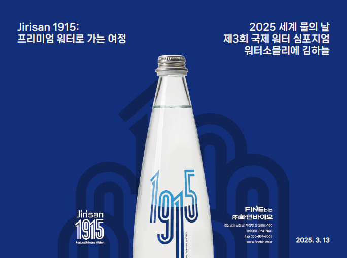 (사)한국국제소믈리에협회(회장 고재윤 경희대 고황명예교수)는 오는 3월 13일(목) 서울 잠실 소재 소피텔 앰배서더 서울 호텔 그랜드 볼룸에서 2025년 세계 물의 날 제3회 국제 워터 심포지엄이 진행된다고 밝혔다. 총 2부 세미나가 진행되는 이번 심포지엄에서 마지막 순서로 2014년 한국 국가대표 워터소믈리에 경기대회 우승자인 김하늘 워터소믈리에가 ‘지리산 1915: 프리미엄 워터로 가는 여정’을 주제로 세미나를 발표할 예정이다.