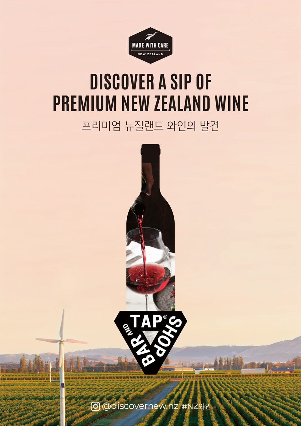 뉴질랜드 무역산업진흥청(New Zealand Trade and Enterprise, 이하 NZTE)이 4월 한 달간 탭샵바(TapShopBar)와 협업하여 프리미엄 뉴질랜드 와인 프로모션을 진행한다.