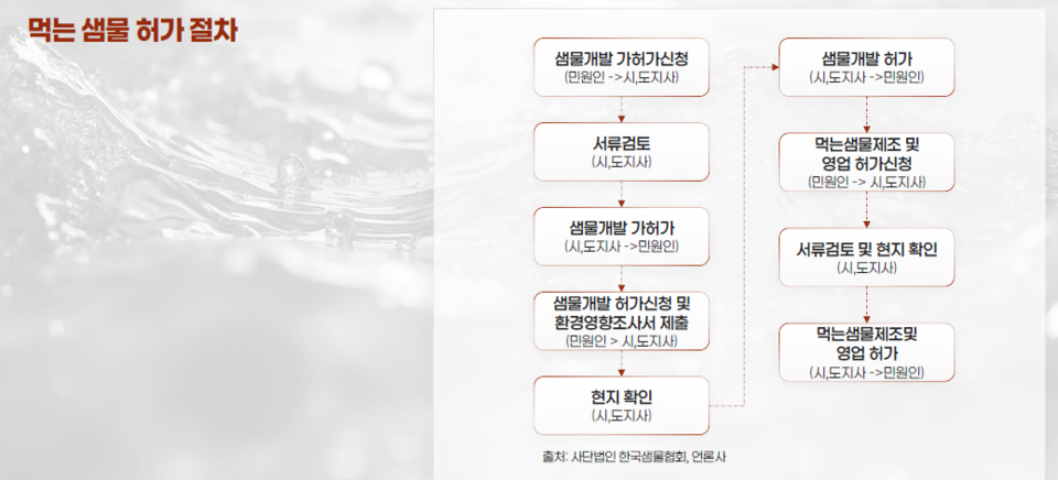 둘째가 민원 문제라고 생각합니다. 물은 자연에서 나옵니다. 땅에 파이프를 꽂아 지하수를 개발하는 것이기 때문에 환경단체나 주변 주민들의 민원으로부터 자유로울 수 없습니다. 기존 업체가 주변 민원과 갈등 구조가 있었는지, 협력 관계로 있었는 지에 따라 운영의 어려움이 달라집니다.