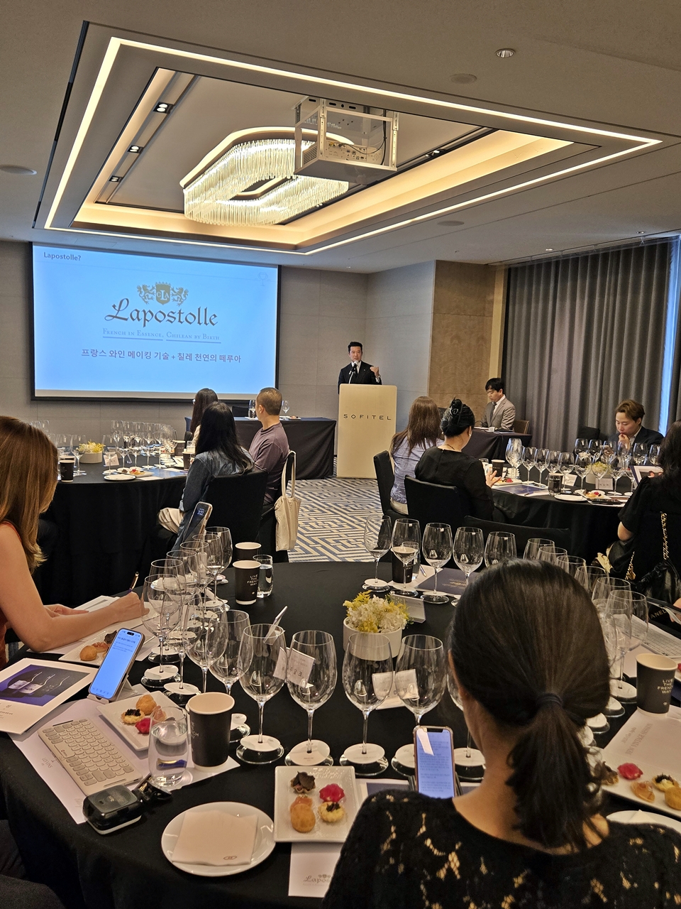 2025년 8월 13일(수), 서울 송파구 잠실에 위치한 소피텔 앰버서더 서울 그랜드 볼룸에서 주류 전문기업 레뱅(LES VIN)이 수입하는 칠레 프리미엄 와인 브랜드 라포스톨(Lapostolle)의 아이콘 와인 끌로 아팔타(Clos Apalta)가 ‘정점(頂點)’이라는 테마로 특별 세미나를 개최했다. 이번 행사는 라포스톨의 앰버서더이자 소피텔 앰버서더 서울 식음료 총괄 정하봉 이사의 진행으로 빈티지 리포트와 끌로 아팔타 테이스팅이 함께 진행되었으며, 국내 와인 업계 전문가들과 소믈리에들이 참석해 자리를 빛냈다.