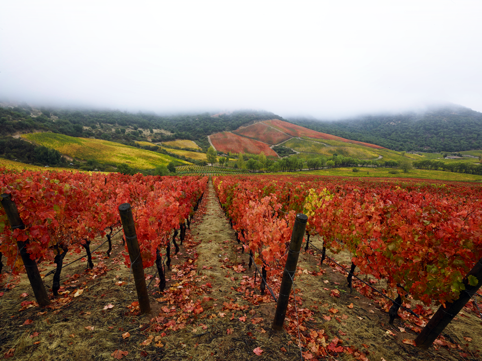 아팔타 빈야드(Apalta Vineyard)는 칠레에서도 가장 명성이 높은 콜차구아 밸리(Colchagua Valley) 중심부 해발 185~385m에 자리한 60ha 규모의 포도밭이다. ‘아팔타(Apalta)’라는 이름은 현지 원주민 마푸체(MAPUCHE) 언어에서 유래했는데, ‘약간 기울어진 땅’을 의미한다. 실제로 포도밭의 곡선 형태와 경사가 이를 잘 설명해주며, 이 지형적 특성이 와인에 독창적 개성을 불어넣는 중요한 배경이 된다. 까르미네르, 메를로, 까베르네 소비뇽 등 100년이 넘는 올드바인 품종을 보유하고 있으며, 끌로 아팔타가 생산되는 독창적 개성을 완성하는 심장과도 같은 곳이다.
