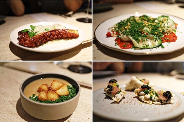 바이트 형태인 고등어가 올라간 올리브 크래커와 망고 바질가지로 맛을 낸 토마토 샐러드, 파프리카와 주니, 버터스카치 펜넬로 맛을 낸 문어라던지 방풍나물과 카라멜 팝콘이 더해진 숭어 세비체등의 디쉬를 제공하고 있습니다.