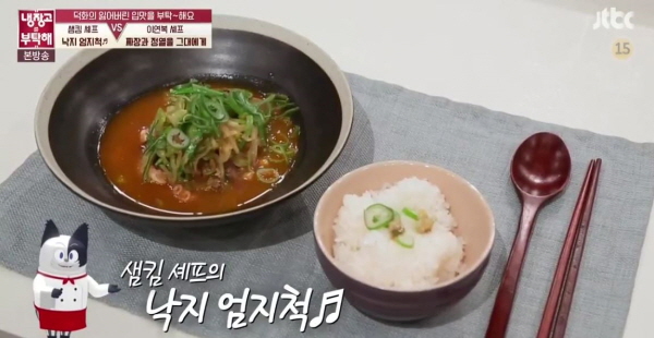 - [TV 레시피]냉장고를 부탁해, 매운 음식 마니아 김숙을 위한 윤정수의 주문 메뉴! 샘킴의 ‘갈크러시’와 최현석의 ‘깐초이면’
